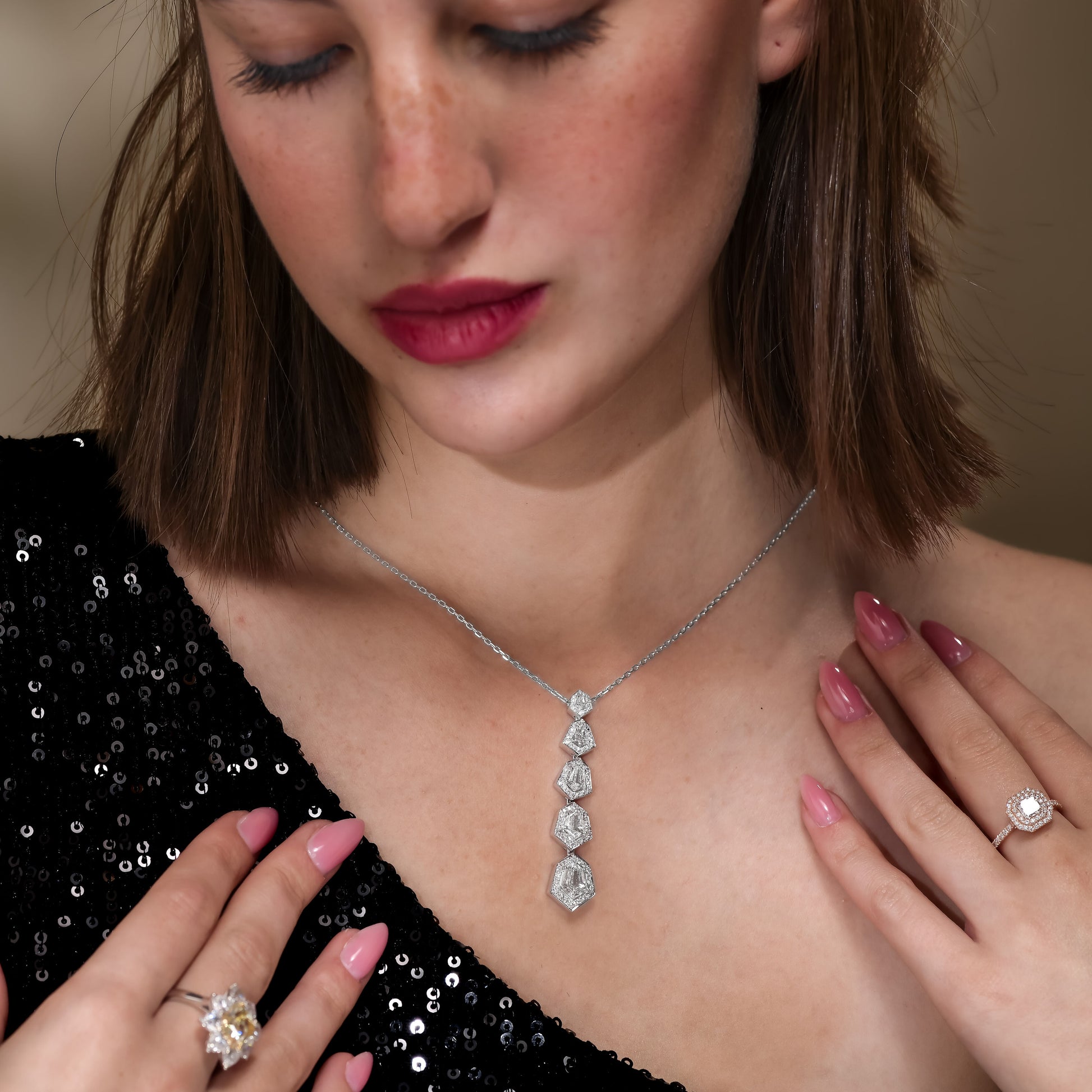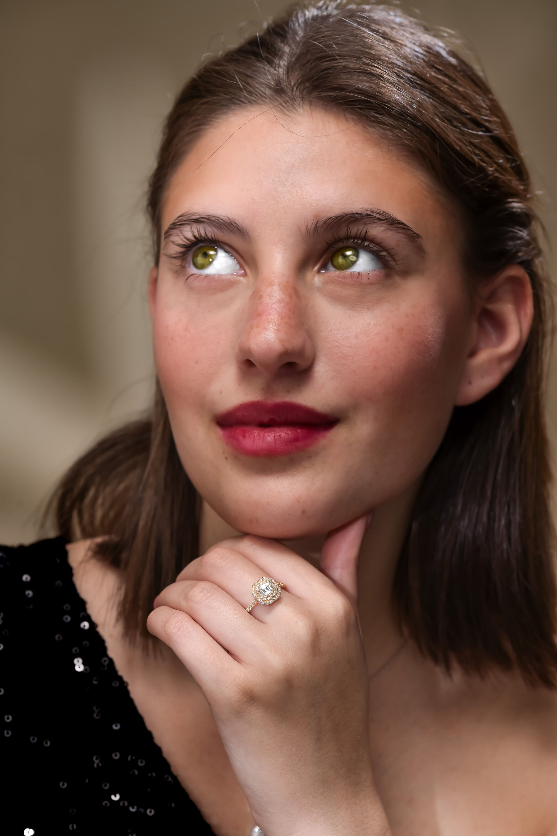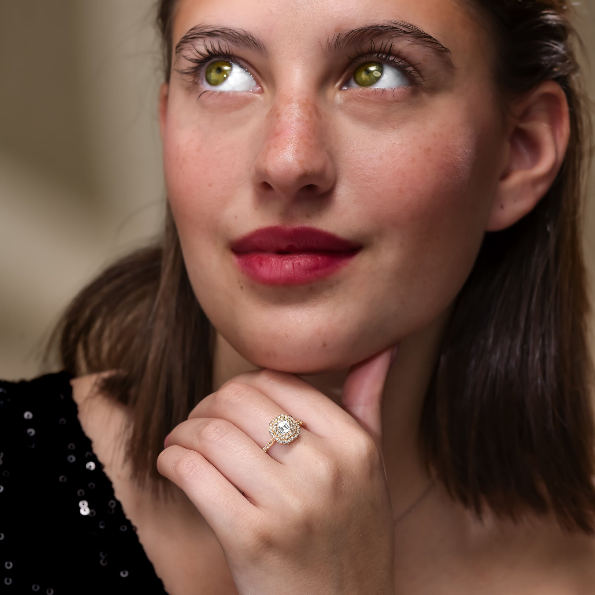 - Main stone: 0.59ct Asscher Square Emerald Cut Cut I Color VVS1 Clarity, with GIA certificate