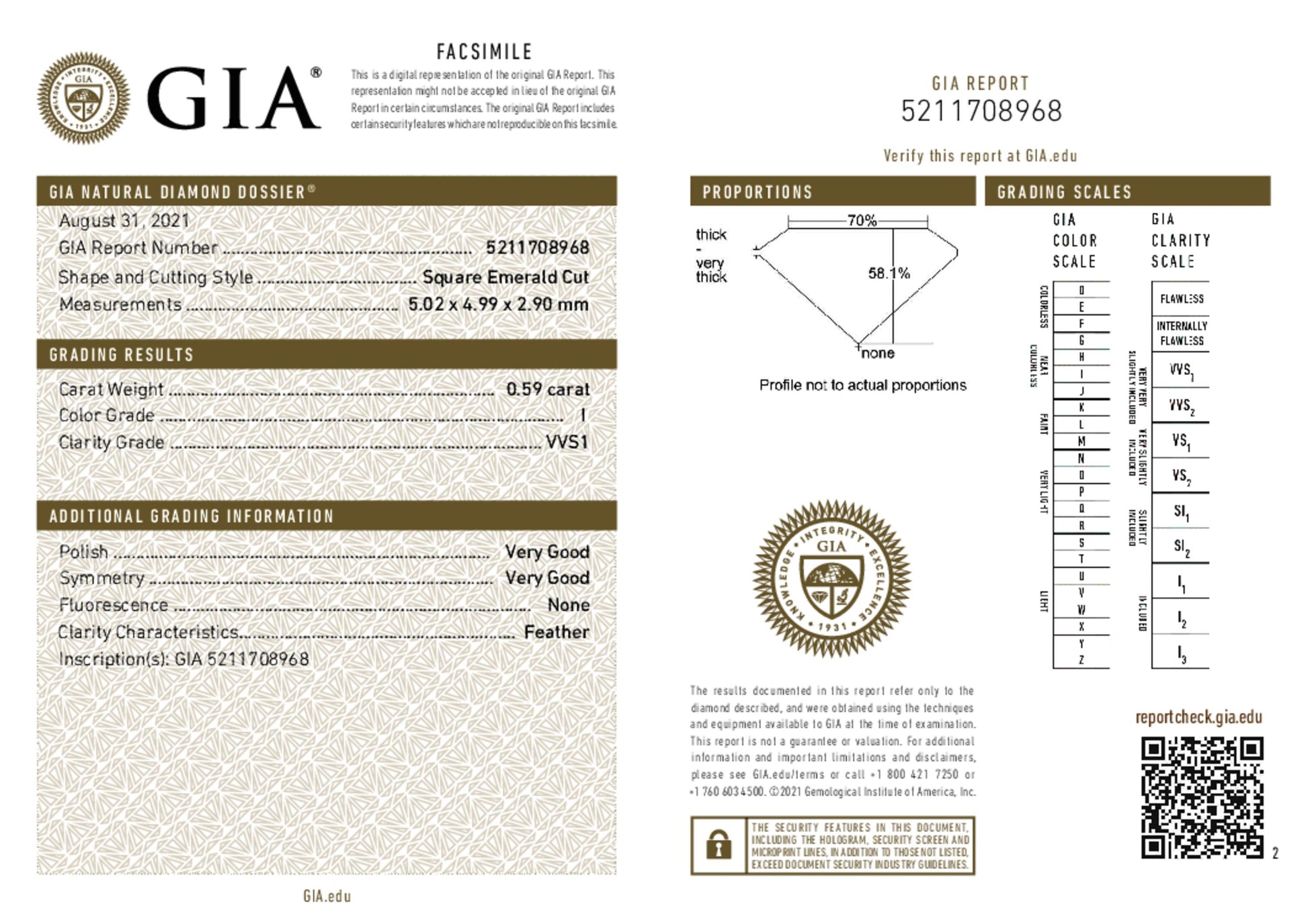 - Certificate: GIA certificate number 5211708968