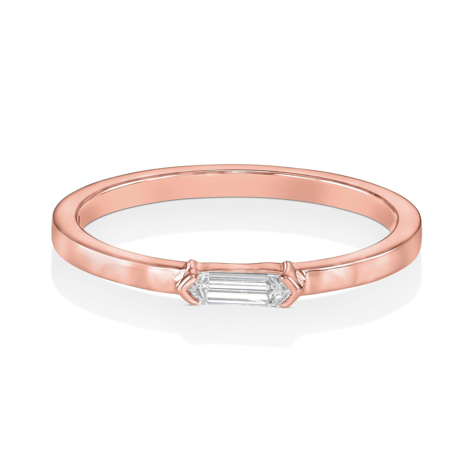 18k Rose Gold Ring With 0.16 Carat Elongated Hexagon Shape Natural Diamond