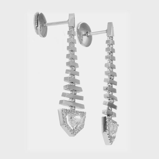 1.06 tcw Epaulette Shape Natural Diamond in a 18k White Gold Dangling Earring, Main Stones 0.89ct (Epaulette Shape) +0.17ct Round Stones, Gold Weight: 6.49 Gram