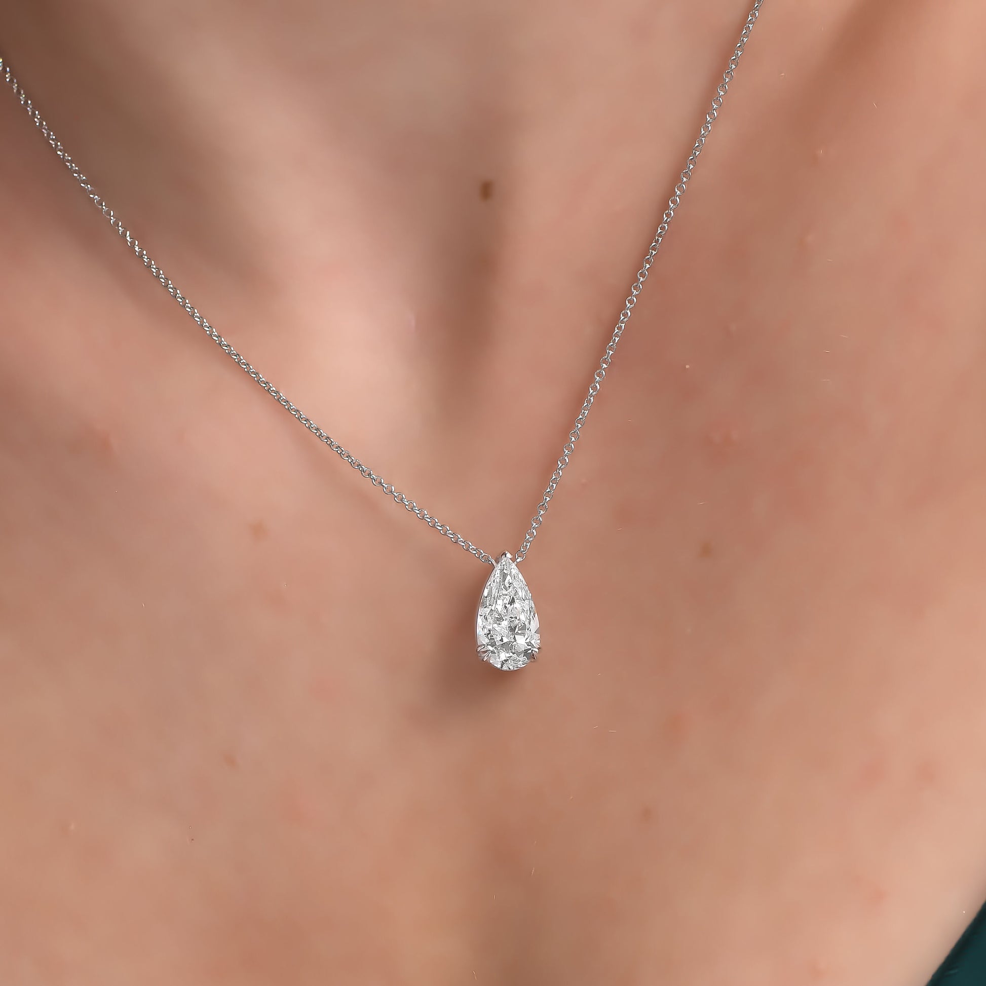 3.01 ct Pear Shape Natural Diamond in 18k White Gold Solitaire Pendant