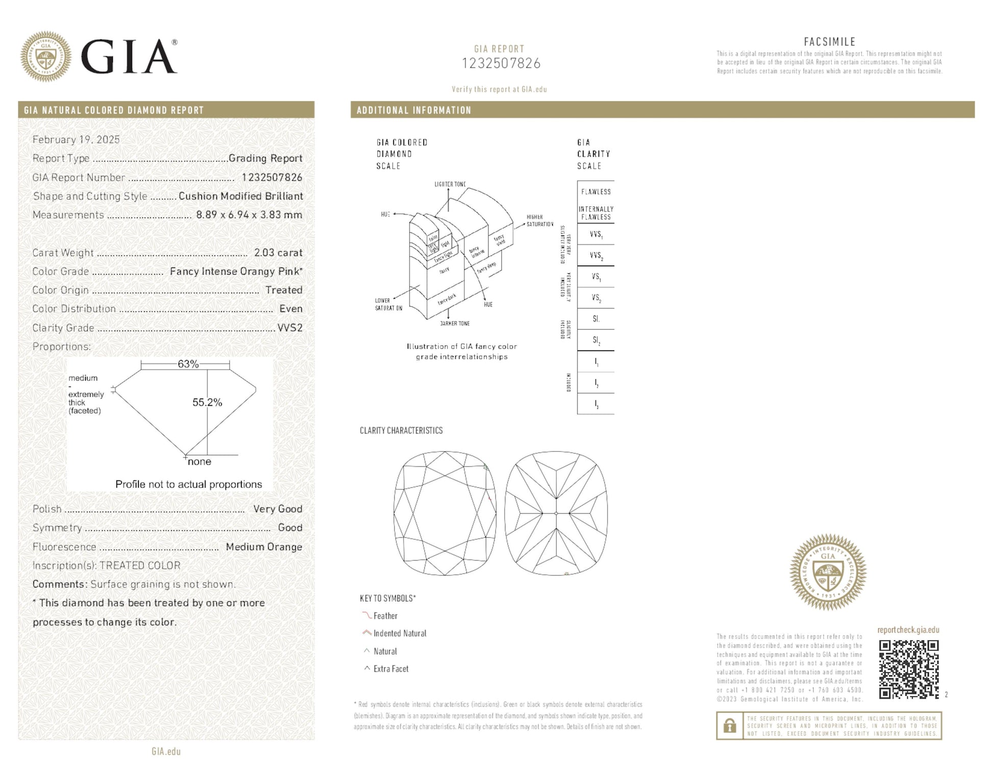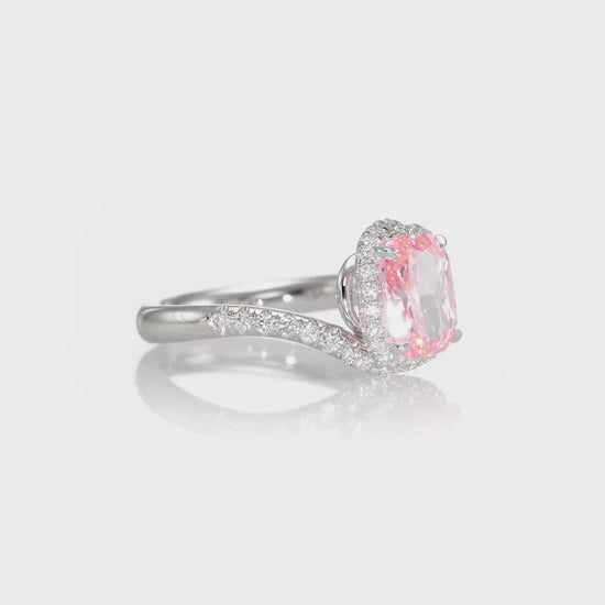 · Main stone: 2.03 ct Fancy Intense Orangy Pink Cushion (treated) VVS2, GIA cert #1232507826