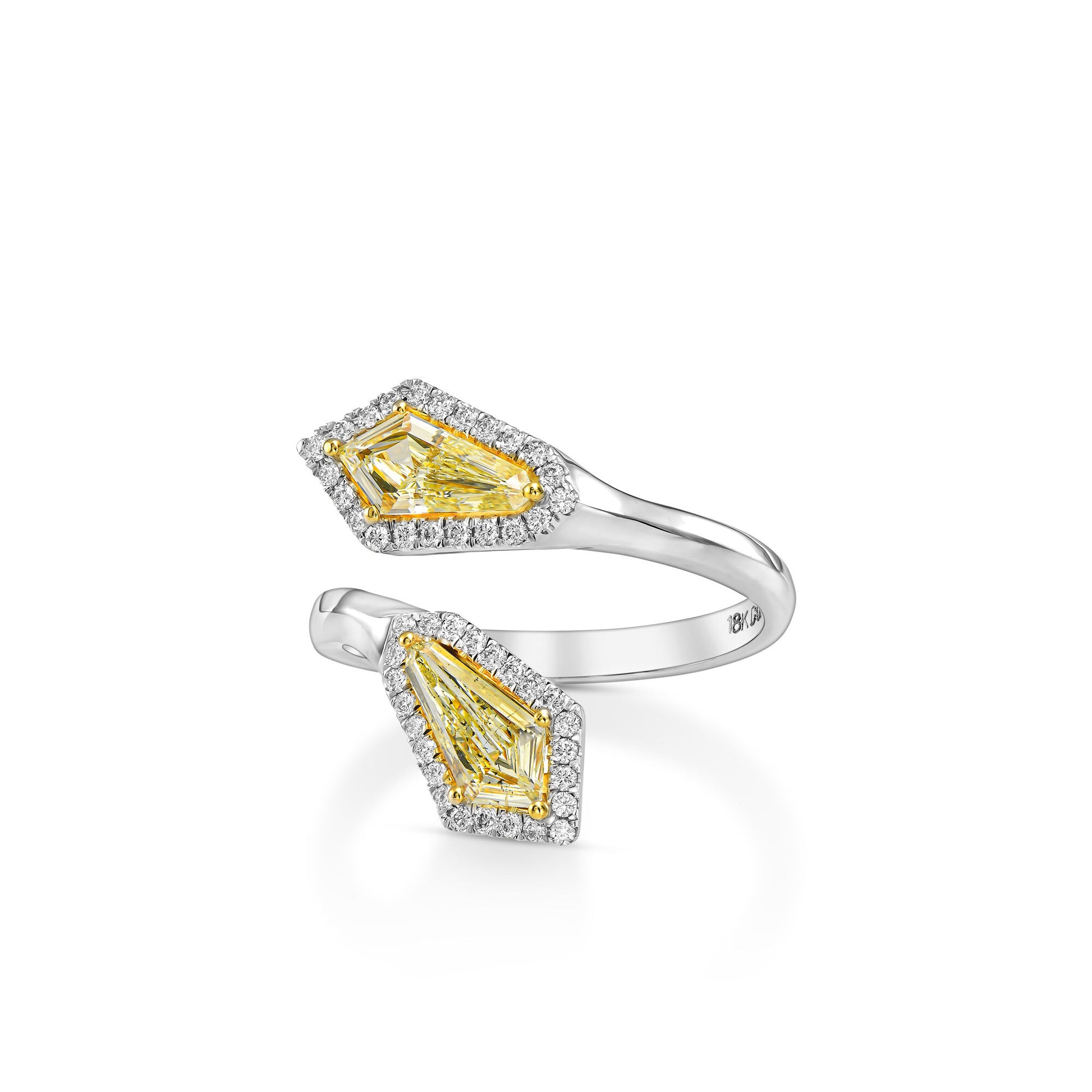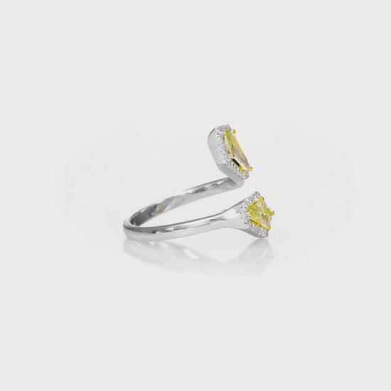 18k White Gold Toi & Moi Ring With 0.83ct Fancy Yellow Pair of Shield Shape Natural Diamond