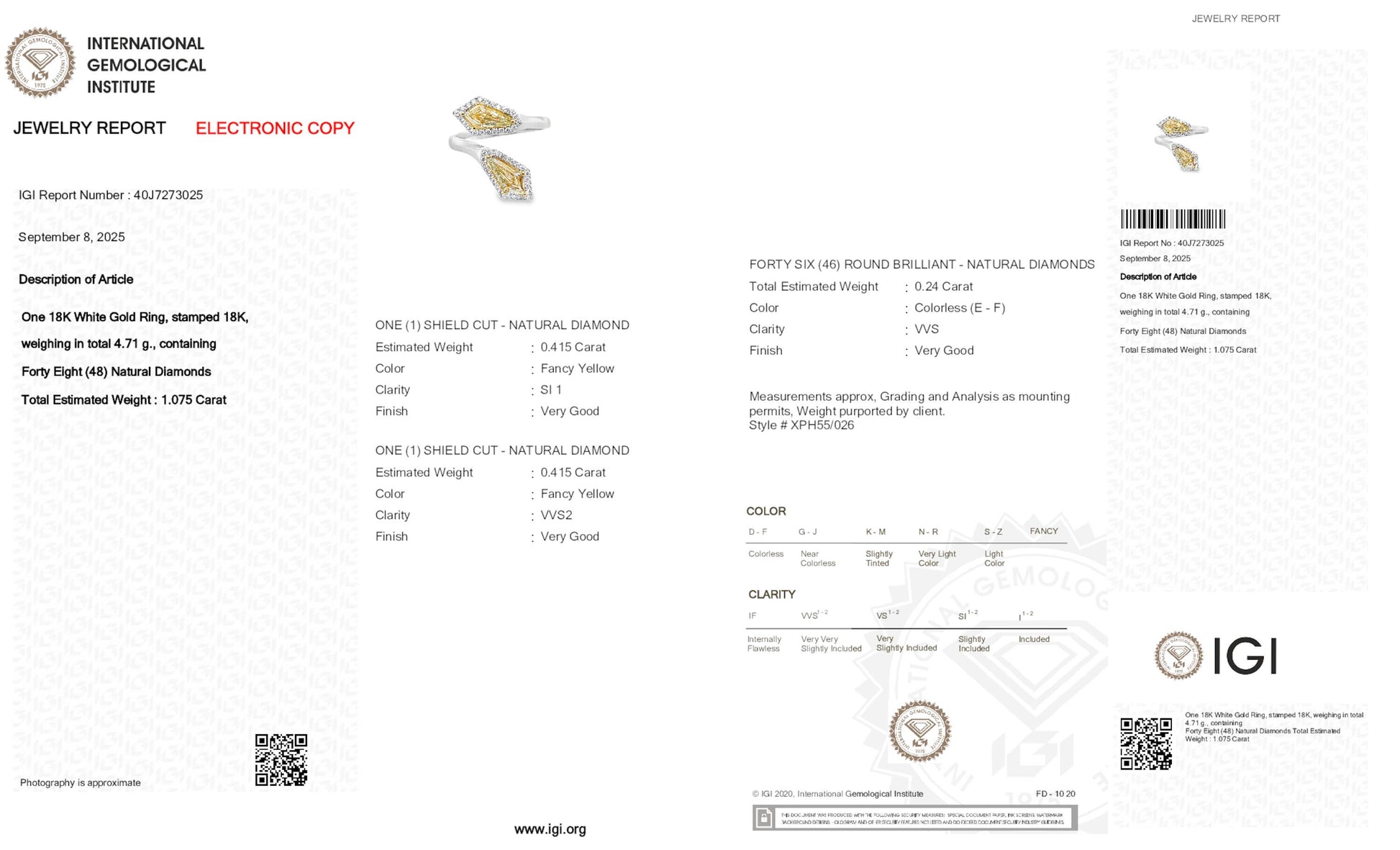 - Certificate: IGI certified, certificate number 40J7273025