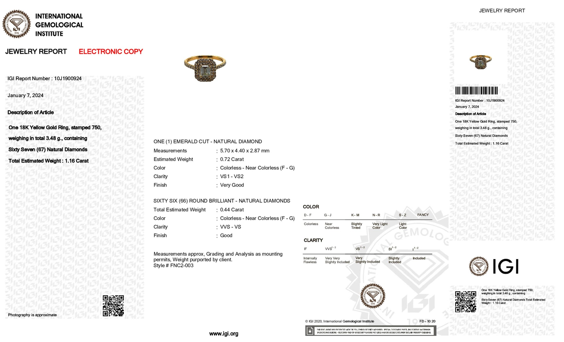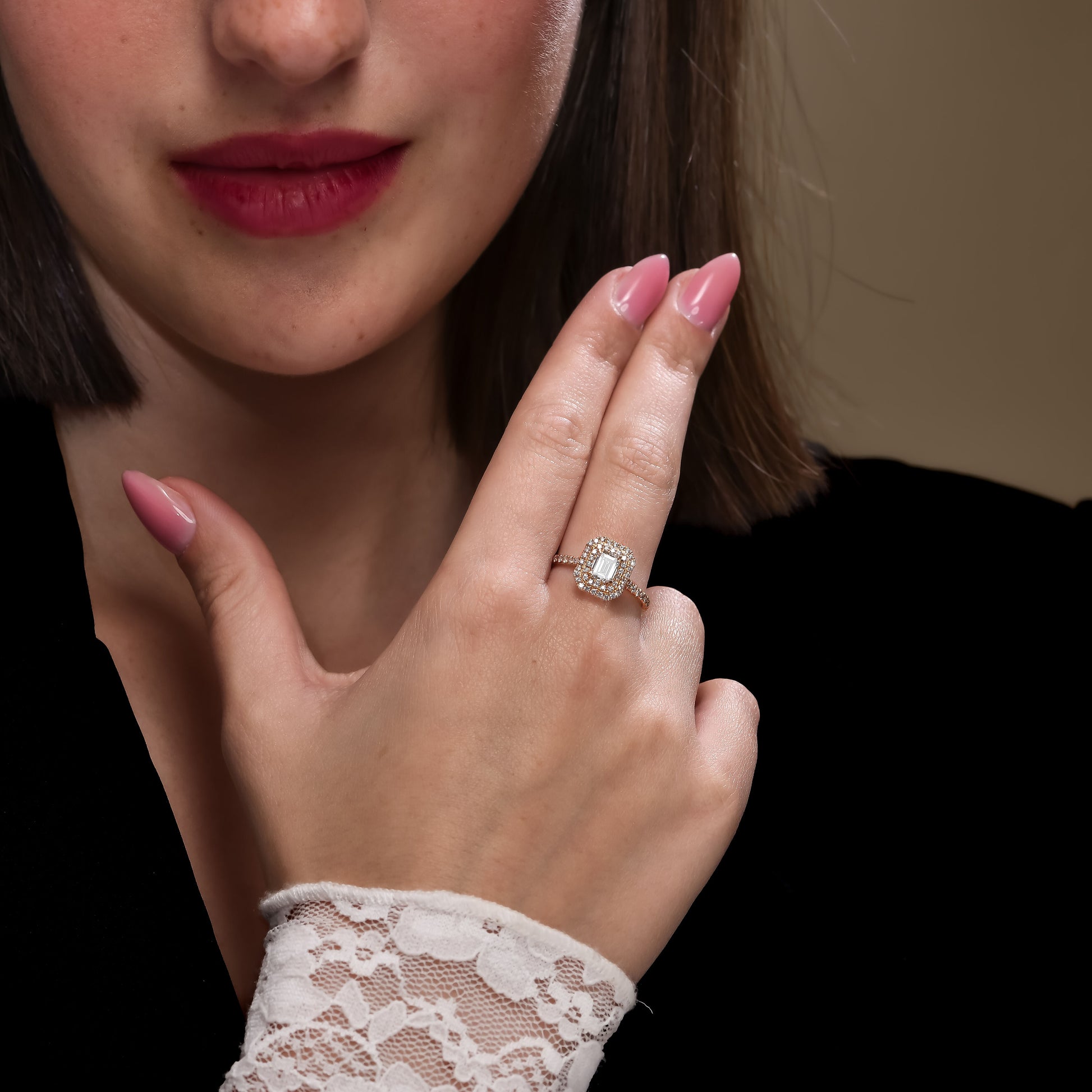 This beautiful 18k Yellow Gold Engagement Ring With 0.86 tcw Emerald Cut Natural Diamond ring showcases fine craftsmanship and precision-set diamonds, combining classic design with certified quality.