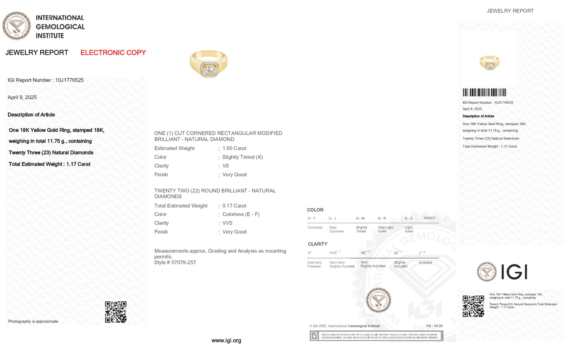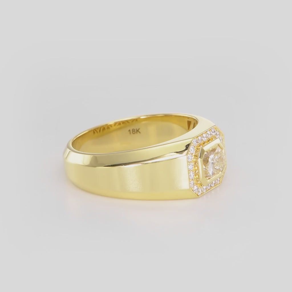 This 18K Yellow Gold men’s ring showcases fine craftsmanship and precision-set diamonds, combining classic design with certified quality.